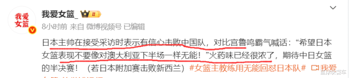 此前热身赛阶段,中国队曾先后两次击败日本队,不过,当时日本队主帅却表示,他们会在亚洲杯上复仇中国队。而在输给澳大利亚后,当被问及半决赛可能要面对中国队时,日本队主帅还是一如既往的信心满满,他直言如果日本队能够保持打澳大利亚的状态,他有信心可以击败中国队,也有信心能够限制住张子宇。很显然,对于上一届亚洲杯输给中国队后,日本队还是一直耿耿于怀。